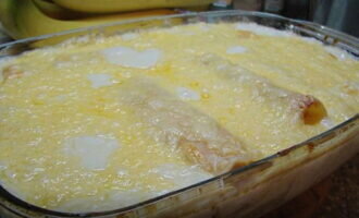 2) Для соуса «Бешамель» растопите в сотейнике сливочное масло, обжарьте в нем три ложки муки, налейте литр молока и перемешайте до однородного состояния, чтобы не было комочков муки. Соус по своему вкусу посыпьте солью с черным перцем и поварите на н