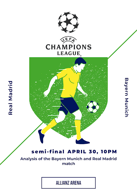 Champions League 2024 In the name of God, the most gracious, the most merciful May peace and blessings be upon our master Muhammad ( Peace be upon him ) May the peace, blessings, and mercy of God be upon you Analysis of the Bayern Munich and Real Madrid match Today, Tuesday, April 30, 2024, the German club Bayern Munich will meet the Spanish club Real Madrid in the first leg of the semi-final match in the European Champions League at ten o’clock (10:00) pm Cairo time at the Allianz Arena in Munich, Germany. Which has an audience capacity of approximately 67,812 thousand fans. Technical report for the match The Real Madrid club team plays in a 4-5-1 / 4 - 3 - 3 way and presses the opponent in an area defense manner where the ball is located and cuts off balls from the defensive half to pass fast through balls or long balls to the sides to hit the defenses and become counterattacks.