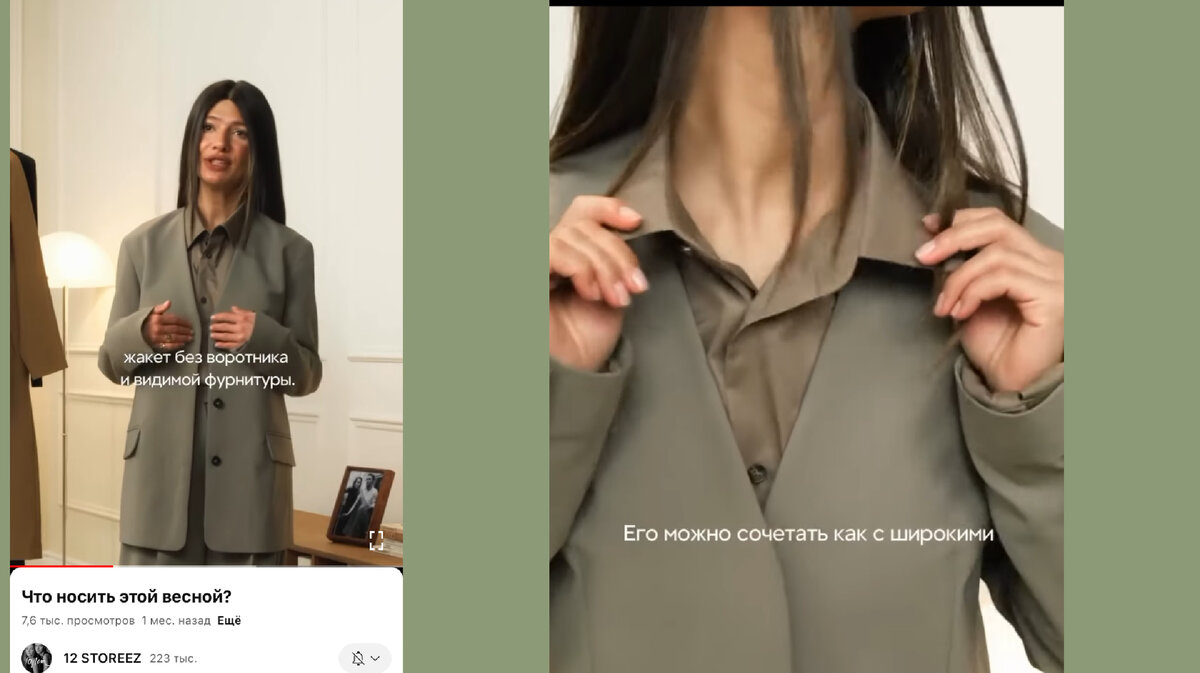 Всем привет! Вы на канале «Амбасадор уютного дома» и сегодня я решила рассказать о теме, которая мне лично стала близка и я знаю , что многим она нравится Это одежда и стиль, причем очень часто я подсматриваю идеи у известных брендов и потом ищу в своем гардеробе нужную одежду, даю вторую жизнь вещам и также иногда заглядываю в секонд-хенд. Что сегодня в статье? Покажу здесь свои удачные покупки в секонд и на WB, а также в статье будут полезные коллажи. Нажав на фото, мы сможете его скачать и сохранить на телефоне, чтобы потом можно было быстро собрать интересные образы из той одежды, которая у вас есть. Поделюсь одним очень бюджетным но стильным аксессуаром, который сейчас на пике популярности В секонд-хенд я нашла блузу темно-оливкового цвета от Zara и посмотрев примеры у 12 Storeez я решила просто ее надеть вместе с пиджаком. Да это банально,но вцелом образ на мой взгляд сложился На мне: Недавно опять же у 12storeez видела замшевый жакет в оттенке кемел Очень похожие только намно