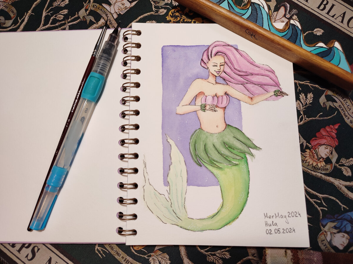 А я к вам со своей второй русалкой, сегодня же уже 2 мая) И тема номер 2 - это Хула. Ху́ла — гавайский танец, сопровождаемый ритмической музыкой и песнопением, известным под названием меле. Вообще я сразу вспомнила мультик "Лило и Стич", а потому подсмотрела там наряд . Да, эти юбка и браслеты из листьев навеяны именно этим диснеевским мультиком))) А вы всегда можете присоединиться к челленджу) Со всеми темами для MerMay можно ознакомиться тут Работу по первой теме челленджа можно посмотреть тут