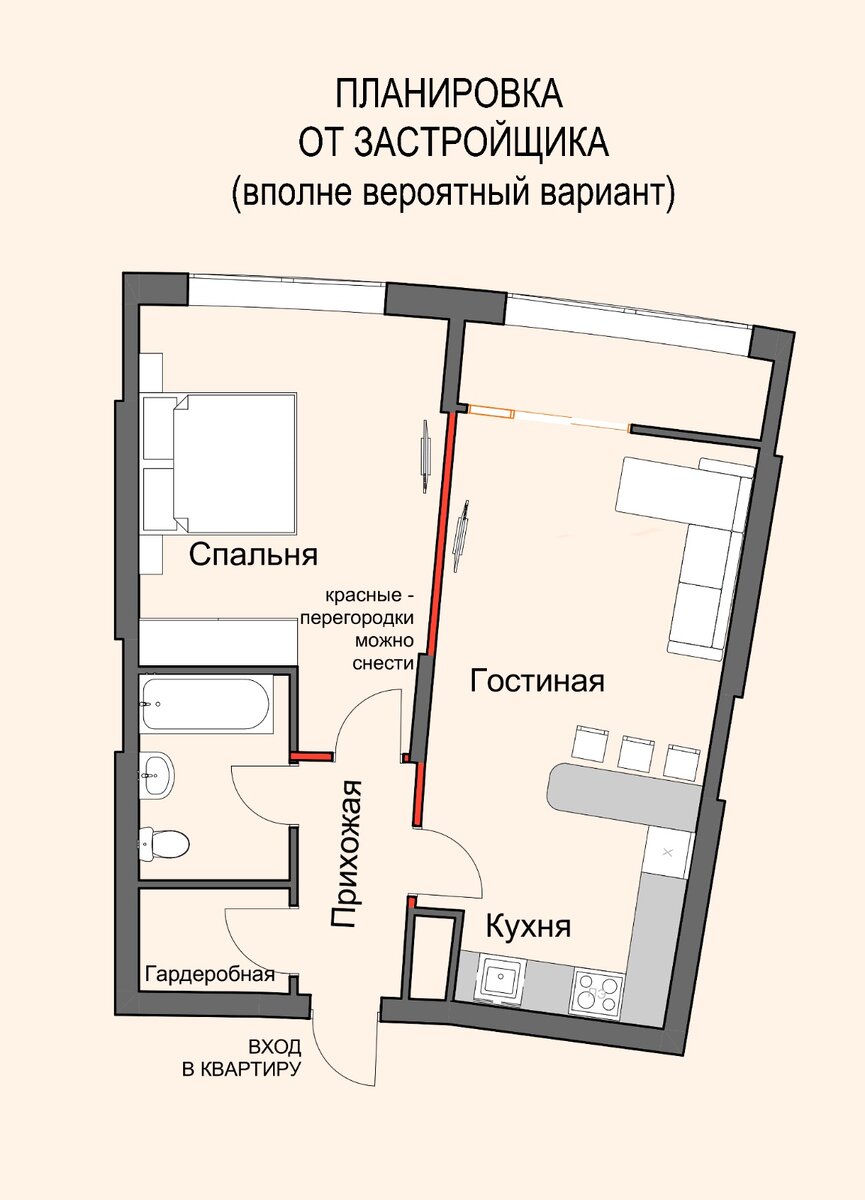 Задали мне тут вопрос про планировку квартиры неправильной формы. Это вопрос даже не про Фен Шуй, а про здравый смысл. В семье возник конфликт: при выборе квартиры для покупки. Все устраивает, но комнаты неправильной формы. Женщина сказала: «как-то некомфортно от стен». Мужчина ответил: «мебелью закроем и нормально планировка будет». И они оба правы, только каждый по-своему. Не параллельные стены действительно могут причинять дискомфорт нашему организму – через глаза. И действительно, это можно исправить мебелью. Но стандартная мебель тут не подойдёт (или за ней будет постоянно собираться пыль и грязь). Отличный вариант для тех, кто любит встроенную мебель. Или мебель под заказ. Я, например, люблю такую мебель – скрытую. Это придает «визуальной чистоты» пространству и убирает «визуальный шум». Минимум лишних линий и лишних материалов. Острые углы в квартире – бесполезны для хранения вещей: надо учитывать, как минимум, место для короба под подсветку. Придется сделать небольшой де