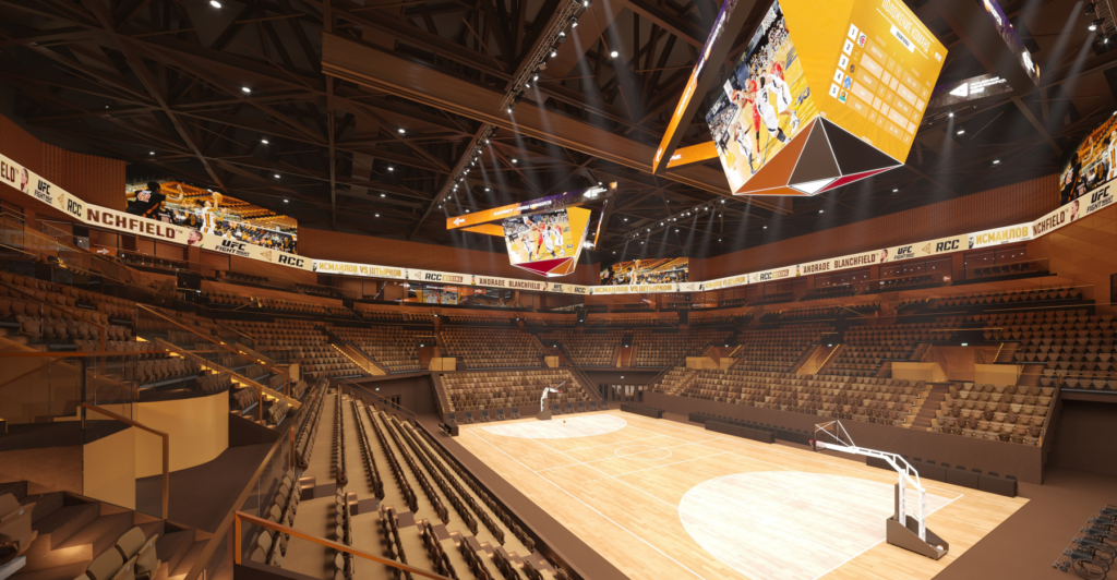 По словам представителя компании-застройщика Алексея Байды, внешний дизайн здания будет выполнен в стиле хай-тек, а на фасаде установят три светодиодных экрана, в том числе над центральным входом в арену будет смонтирован первый в России экран с медиа-стеклом. Планируется, что «РМК-Арена» откроется на северо-западе Челябинска в 2025 году. Она будет вмещать 8 тыс. человек на зрелищных мероприятиях и 5 тыс. болельщиков спортивных состязаний. Спорткомплекс ежемесячно смогут посещать порядка 100 тыс. человек, в локациях комплекса планируется проводить до 250 мероприятий ежегодно.