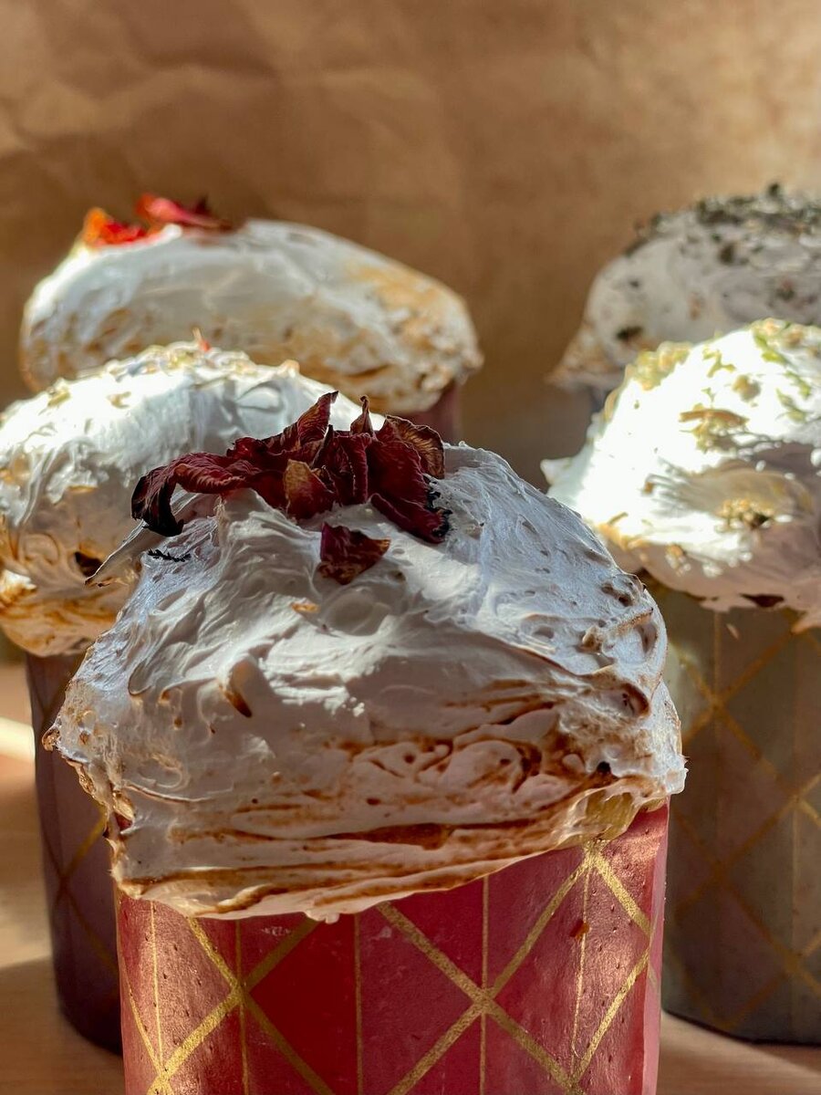 Куличи получаются влажными, но тесто мягкое, не забитое, и, главное, быстро поднимается! Потому что мы сахаром не утяжелаем тесто, а пропитываем потом кулич. Я взяла за основу хитрости рецепта ромовой бабы и немного изменила сироп. Но, можно в сироп и добавить 100 мл рома для более насыщенного вкуса, правда с детьми уже не поешь))) Так же я использую цукаты из апельсинов, которые мы раньше делали. Получается идеальный кулич, на приготовление которого не тратится целый день. Он, действительно, потрясающий! Даже в хороших пекарнях я не пробовала вкуснее, чесное слово! Для одного кулича (13 см диаметром) Ингредиенты: 220 г пшеничной муки 2 ст. л. сахара 4 г сухих качественных свежих быстродействующих дрожжей или 7 г простых сухих дрожжей 1/4 ч.л. соли 45 мл воды 60 г сливочного масла 82,5% 2 яйца CO Орехи/цукаты/изюм Для сиропа: 250 г сахара 250 мл воды Приготовление: 1.Для теста просейте муку, добавьте сахар и дрожжи, перемешайте. Затем добавьте теплую воду, ее температура не долж