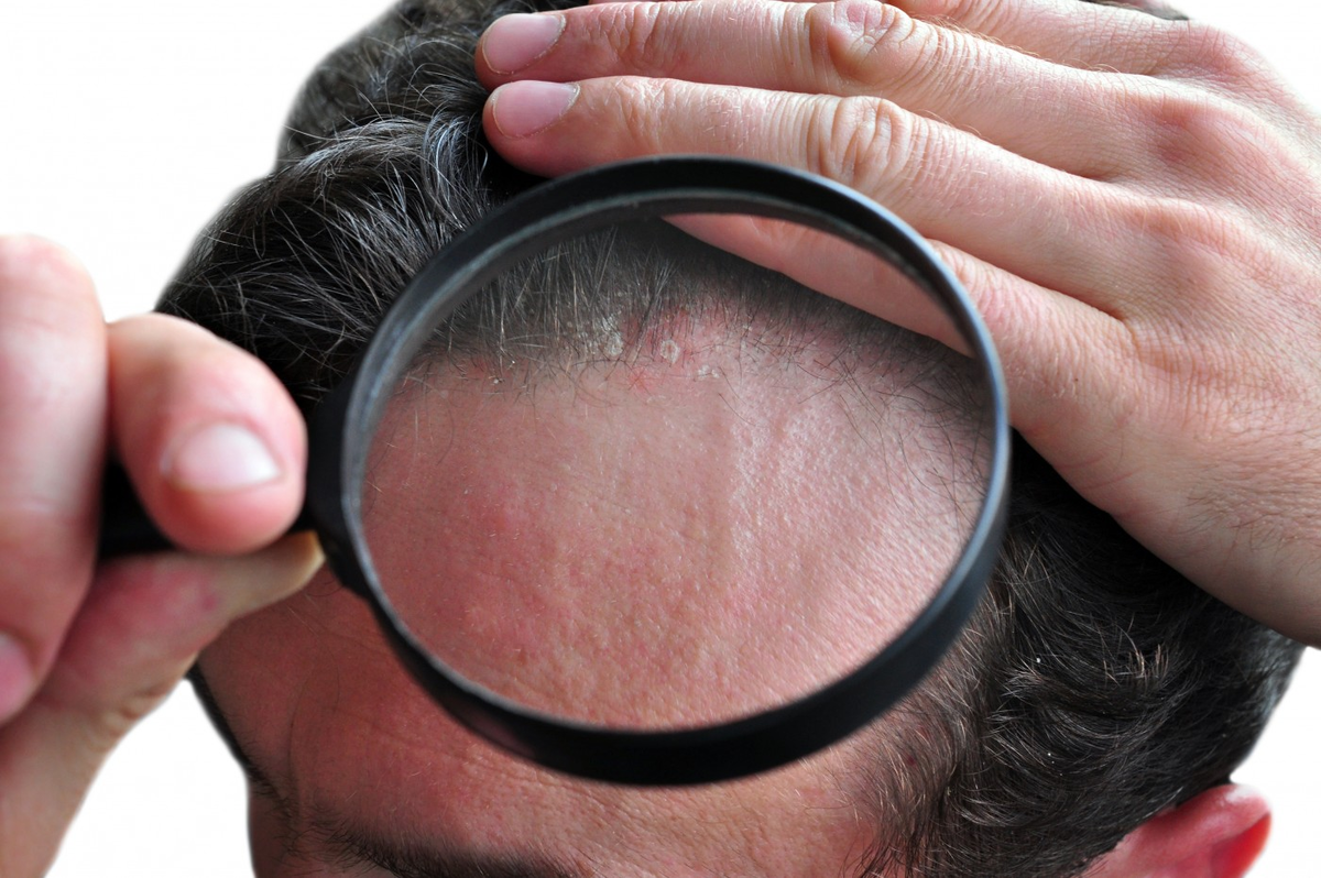 На коже головы эти бляшки достаточно заметны, развитие зуда приводит к расчесам и страданиям, кроме того, дополняется неприятная картина развитием дерматита и сильной перхоти. Бляшки могут расползаться с одного очага по коже практически всей головы, что причиняет сильный дискомфорт пациентам.