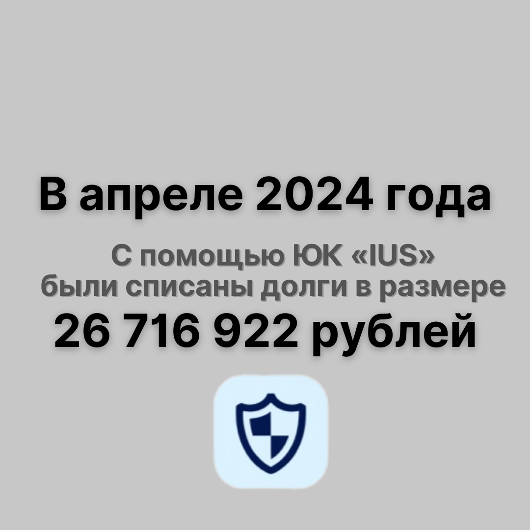 В апреле ДВАДЦАТЬ СЕМЬ дел Юридической компании «IUS» завершились полным списанием долга в общем размере более 26 716 922 рублей😱 Ход дел Вы можете посмотреть на сайте https://kad.arbitr.ru/ введя номера дел в поисковую строку👨🏻⚖️ 1️⃣ А53-30859/2023 ⌛️7 месяцев 19 дней 💰1 776 986 рублей 2️⃣ А53-30550/2022 ⌛️1 год 7 месяцев 3 дня 💰2 604 409 рублей 3️⃣ А53-7938/2023 ⌛️1 год 1 месяц 5 дней 💰более 500 000 рублей 4️⃣ А53-11246/2023 ⌛️11 месяцев 29 дней 💰509 782 рубля 5️⃣ А53-7881/2023 ⌛️3 месяца 6 дней 💰1 674 000 рублей 6️⃣ А53-5364/2023 ⌛️1 год 1 месяц 20 дней 💰более 500 000 рублей 7️⃣ А53-15478/2023 ⌛️11 месяцев 10 дней 💰513 556 рублей 8️⃣ А53-30809/2023 ⌛️7 месяцев 24 дня 💰1 734 000 рублей 9️⃣ А53-23120/2023 ⌛️9 месяцев 13 дней 💰1 113 000 рублей 🔟 А53-22314/2023 ⌛️9 месяцев 13 дней 💰580 000 рублей 1️⃣1️⃣ А53-30806/2023 ⌛️7 месяцев 23 дня 💰1 415 425 рублей 1️⃣2️⃣ А53-29806/2023 ⌛️7 месяцев 23 дня 💰690 000 рублей 1️⃣3️⃣ А53-30867/2023 ⌛️7 месяцев 7 дней ?