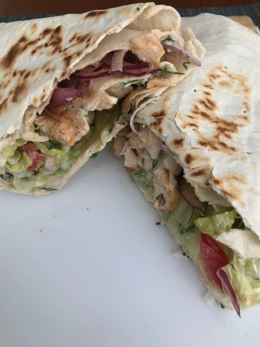 У меня в душе порой идёт конфликт интересов: хочется чего-то вредного и фастфудного, а выходить не хочется. Что ж хочется, значит надо! Хорошо сейчас развита доставка: выходить из дома не надо,- звёзды сошлись, поэтому делаем домашнюю шаурму. А видео-рецепт вы найдете в конце поста. Ингредиенты на две порции: 1. Лаваш - 2 шт. 2. Куриная грудка - 200 - 300 г. 3. Огурец - 1 шт. 4. Помидоры - 2 шт. 5. Пекинская капуста - 4 листа. 6. Сметана - 1 шт. 7. Чеснок - 2 зубчика. 8. Укроп - 1 пучок. 9. Лук- 0.5 луковицы 10. Специи: соль, перец, сушёный чеснок, карри, сладкая паприка. 11. Бальзамический соус 1 шаг. Подготовка овощей. Тут насколько вашей фантазии хватит. Мне шаурма нравится, когда овощи нарезаны тонкими слайсами. Поэтому нарубаем листья пекинской капусты, помидор, огурец, лук. Лук, чтобы не горчил, можно промыть под водой, а после добавляем него небольшое количество бальзамического соуса. 2 шаг. Подготовка соуса. Здесь все максимально просто: мельчим чеснок и зелень и замеши