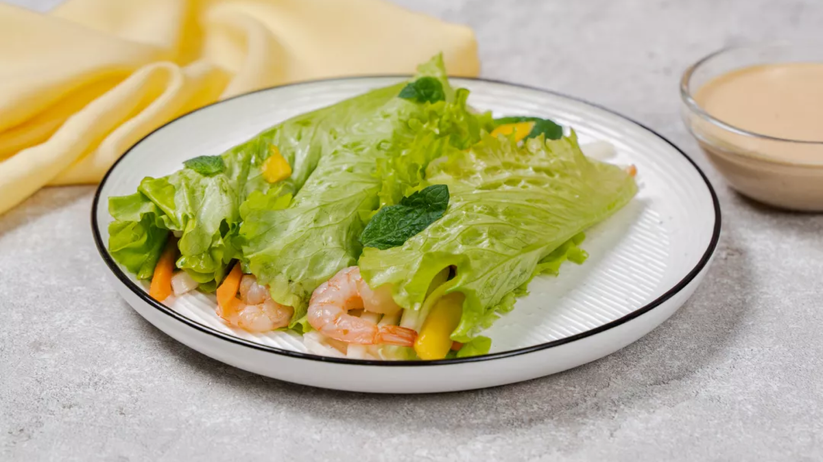Приготовьте свежие и хрустящие спринг-роллы со сладким манго, острым чили и ароматными креветками. В отличие от классических спринг-роллов, эти мы завернули не в рисовую бумагу, а в салатные листья. Такая закуска получилась более легкой и свежей. Вместо дайкона можно взять белую редьку или редис, в зависимости от того, более или менее острое блюдо хочется получить. А вместо рапсового масла подойдет обычное рафинированное растительное.