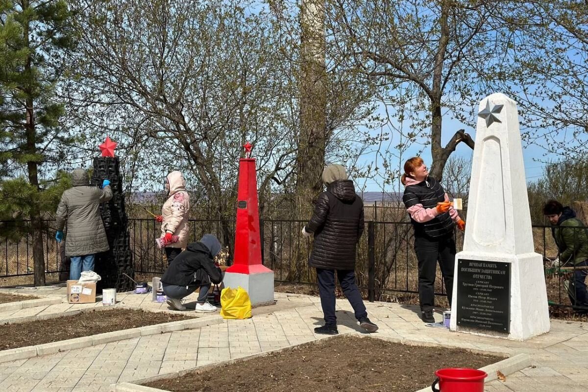 В регионе продолжается Всероссийский субботник на мемориалах Воинской славы Депутат фракции «Единая Россия» в Законодательном Собрании Амурской области Надежда Багрова организовала большую уборку на воинском захоронении времен Великой Отечественной войны в поселке Новый. Там находится братская могила бойцов 100-го отдельного пулеметного батальона 101-го Краснознаменного укрепрайона, павших в боях с японскими милитаристами в Маньчжурии. Активисты не только унесли с территории мемориала прошлогоднюю листву и мусор, но и обновили краской забор и элементы памятника. «Справились за пару часов, а когда завершили все дела, торжественно возложили к могилам привезенные гвоздики. Но самым приятным было то, что, уезжая, мы встретили школьников, которые тоже приехали отдать дань памяти павшим воинам», - поделилась Надежда Багрова. На этой неделе субботники на мемориалах Воинской славы также прошли в Сковородинском и Тамбовском округах. В Сковородине юнармейцы отряда «Орлята» третьей школы провели