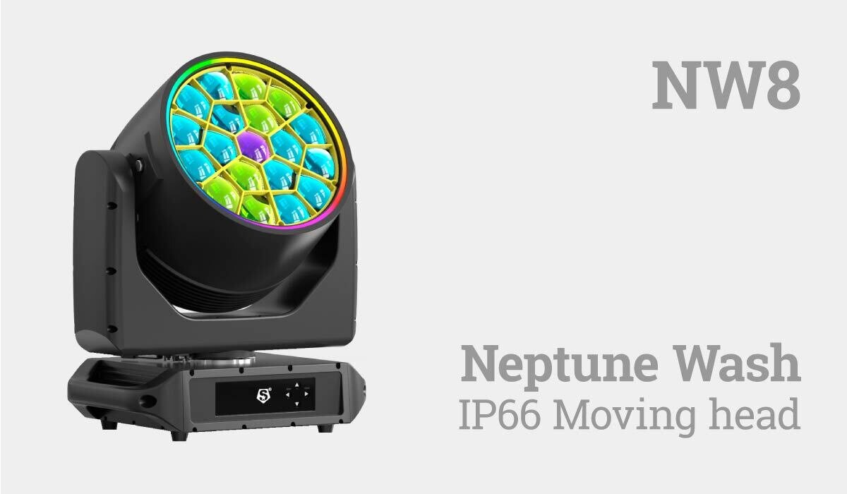 Сегодня мы хотим познакомить вас с новым прибором от компании Silver Star — это всепогодная WASH поворотная голова из серии NEPTUNE. Данный тип прибора не новый для профессионального сценического рынка. Здесь мы попробуем сравнить NW8 с существующими моделями, но сначала подробно расскажем о возможностях прожектора.