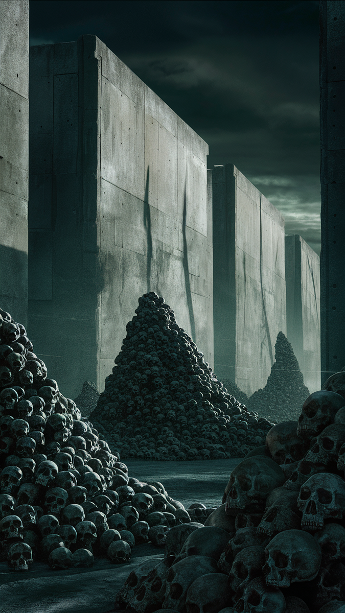 - В искусстве используется визуальный язык, где черепа и кости не всегда являются буквальным представлением смерти, но скорее символизируют концепцию убыли, конца эпохи или цивилизации. Они могут выражать общую тему упадка или разрушения.