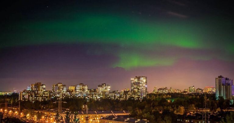 Северное сияние было не только в Москве и Московской области, но еще в Белгороде, Твери, Курске и Перми, где его обычно тоже не увидеть. Фотографиями москвичи активно делились в сторис, в телеграм-каналах и чатах.