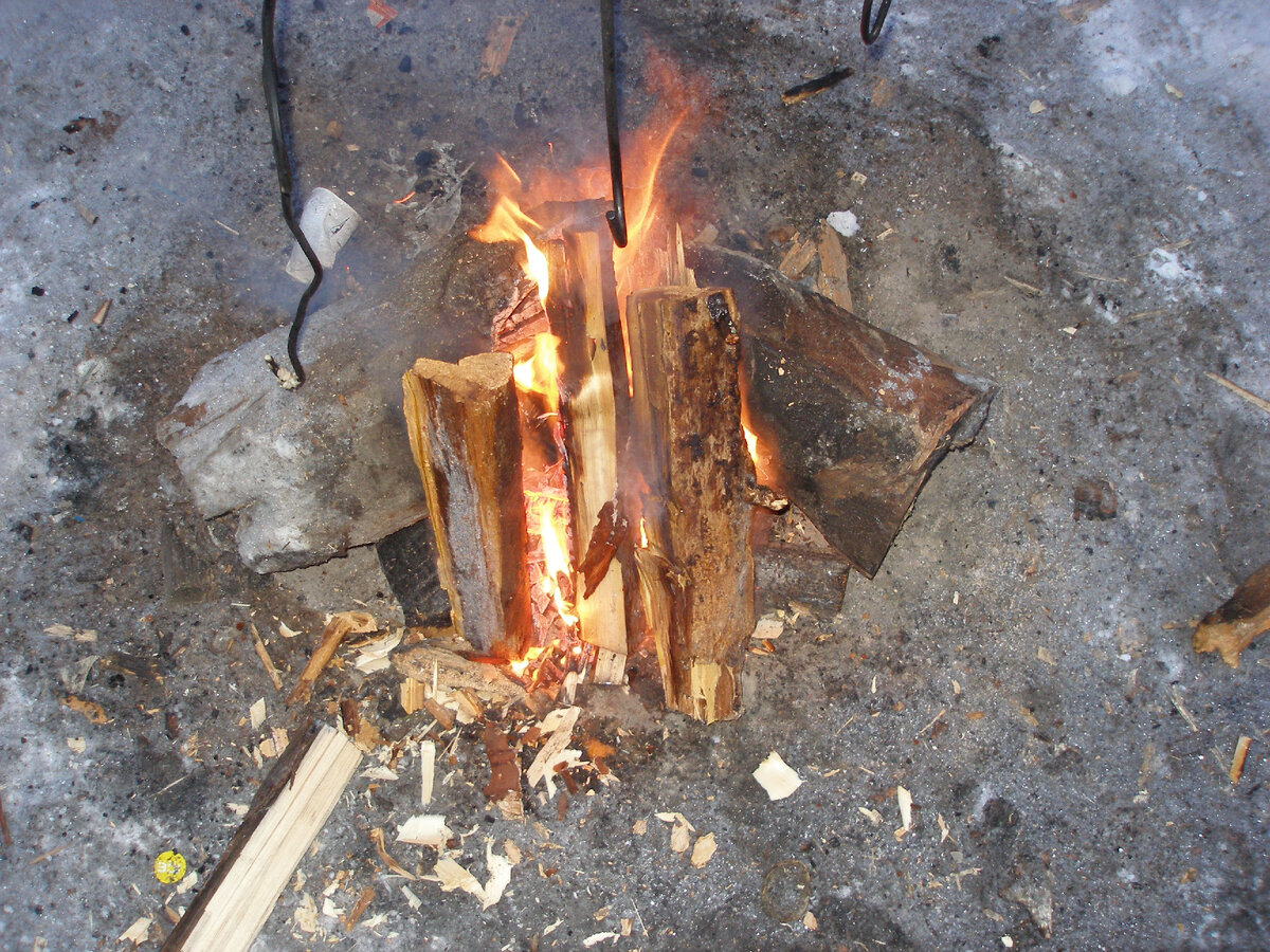 Мое дежурство пришлось на самый холодный день - утром того дня термометр показывал минус сорок градусов «за бортом». Все бы ничего, только дрова вовсе не хотели гореть при столь низкой температуре, и у меня ушло более трех часов, чтобы разжечь костер и приготовить завтрак на всех. Не могу объяснить, почему при минус тридцать пять градусов дрова занимались исправно предыдущим днем, а при минус сорок они отказывались гореть вовсе. Все проснулись, поели, встали на лыжи и пошли. А я взмок в своем синтепоновом комбинезоне и в кальсонах под ним на морозе. Был вынужден раздеться совсем догола - cнять с себя все нижнее белье, и надев комбез прямо на голое тело, поторопился догнать своих на лыжне. Также было еще одно нелицеприятное обстоятельство моего простуженного состояния, в котором я отправился в поход - на маршруте у меня подтекали «водичкой» cопли из носа. Они на трескучем морозе замерзали крупным горохом в носу, раздувая до неприличия ноздри, так что эти шарикоподобные ледышки приходилось выковыривать пальцами из носа. В дальнейшем ноздри угрожающе потемнели, что вызывало тревогу в связи с их обморожением.
