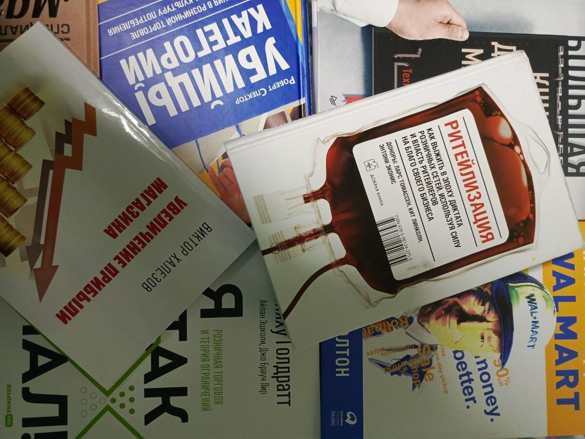 Сегодня хочу поделиться с Вами, той литературой, которая вдохновляет меня, это книги прочитанные мной за последний год, и те которые я сейчас читаю: 1. С.Сысоева Большая книга директора магазина - классическое пособие, которое покрывает все аспекты розничной торговли, включая стратегии маркетинга, управление запасами, управление персоналом и многое другое. 2. Ретейлизация. Как выжить в эпоху диктата розничных сетей, используя силу власти ретейлеров на благо своего бизнеса - в этой книге рассмотрены современные тенденции и изменения в розничной торговле и практические советы о том, как адаптироваться к ним. 3. К.Шредер Специализированный магазин -книга для начинающих предпринимателей в розничной торговле, содержит практические советы о том, как управлять стратегиями для успешного бизнеса. 4.Г.Дж. Фридман Нет, спасибо, я просто посмотрю - автор этой книги является экспертом в области потребительского поведения и рассматривает, как потребители принимают решения во время покупок и как это