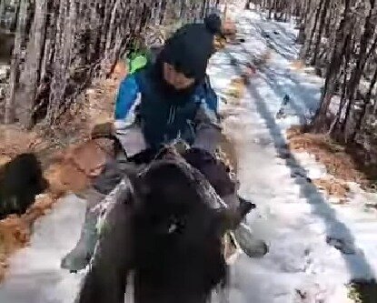 Видеофакт: в якутском селе сонный мальчик верхом на лошади следует за отцом
