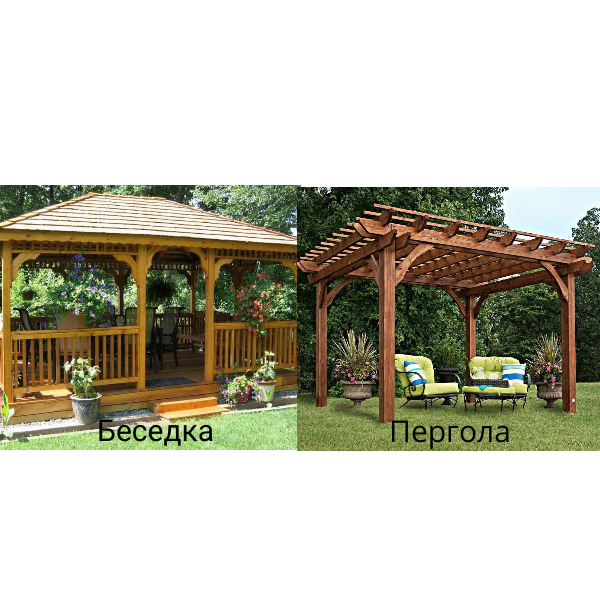Общие черты пергол и беседок: - Оба варианта предоставляют тенистое место для отдыха.
