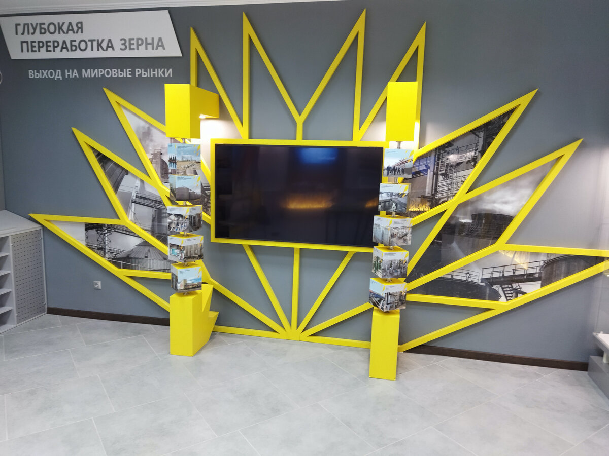 Мы воплотили готовую задумку музея, начиная с проработки каждой детали и внедрения элементов в предоставленном помещении под музей. Изначально агрохолднинг уже имел устаревший дизайн-проект, который не соответствовал современным запросам заказчика, и не был рассчитан на интерактивные и мультимедиа-элементы.