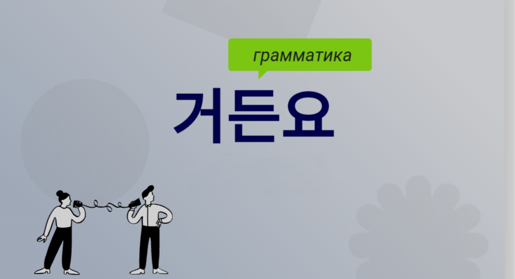 Присоединяется к временной основе глагола / прилагательного. ✔Настоящее время: Глагол - 먹거든요 Прилагательное – 길거든요 Существительное + 이다 - 학생이거든요 ✔Прошедшее время: Глагол – 먹었거든요 Прилагательное – 길었거든요 Существительное + 이다 – 학생이었거든요 ✔Будущее время: Глагол - 먹을 거거든요 Прилагательное – 길었거든요 Существительное + 이다 – 학생일 거거든요. Обратите внимание, что на панмале 요 в конце отбрасывается. 📢1. Пояснение в ответ на вопрос или замечание собеседника (чаще всего объясняет причину). Обратите внимание, что реплика собеседника не обязательно звучит как прямой вопрос! Ответ на вопрос собеседника: 가: 목소리가 왜 이렇게 이상해요? Что у вас голос такой странный? 나: 어제 감기에 걸렸거든요. Я простудился вчера. 가: 항생제를 드세요? Вы принимаете антибиотики? 나: 아니요, 위장 문제가 있거든요. Нет, у меня проблемы с желудком. Ответ на комментарий собеседника (не на вопрос!): 가: 천천히 먹어. Ешь неспеша. 나: 난 오늘 하루 종일 굶었거든. Просто я сегодня весь день голодный. 📢2. Введение новой информации для пояснения ситуации собеседнику (в продолжение своих слов). Объя