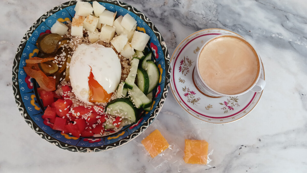 О моих запасах продуктов и бюджете на питание в мае можно почитать ЗДЕСЬ Каталог рецептов Покупка продуктов 1 - Мегамаркет, Вкусвилл, Магнит, Озон, Пятерочка Покупка продуктов 2 - Вкусвилл, Озон, Светофор, Дикси, Пятерочка Сегодня на завтрак приготовила боул, а к кофе - манго-конфетки В боул собрала все, что было в холодильнике. Основа - отварная киноа, плюс 5-тиминутное яйцо, свежие огурцы, болгарский перец, огурчики как в маке и жареный сыр халуми кубиками. Заправка - кунжутное масло и кунжутные семечки. Сварила шурпу. У меня оставался последний кусочек баранины на кости, шурпа именно на баранине самая вкусная. Рецепт супа здесь В морозилке был сваренный нут, его добавила в суп. Ну и овощи. Очень жирненький, наваристый и вкусный супчик После обеда попила кофе с орешками кешью и сыром с белой плесенью. Перекус такой же, как вчера И на ужин у меня была тушеная говядина по-мароккански с курагой и черносливом. Своим мужчинам на гарнир делала булгур и цветную капусту. У меня только говя