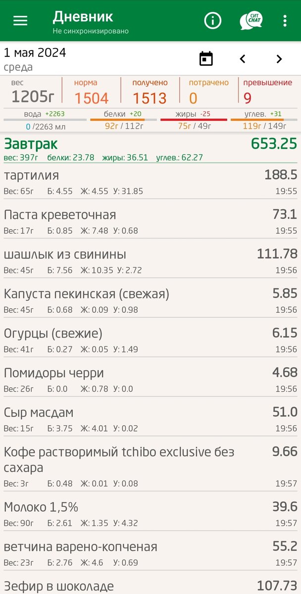 Я позавтракала. Еду взвешивала, всё записала и уехала на работу.
