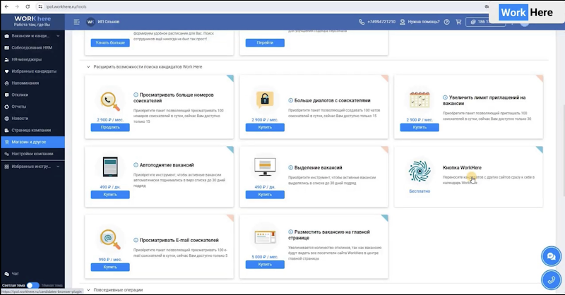 Наглядный пример использования CRM-системы workhere.ru в работе рекрутера с использованием расширения WorkHere