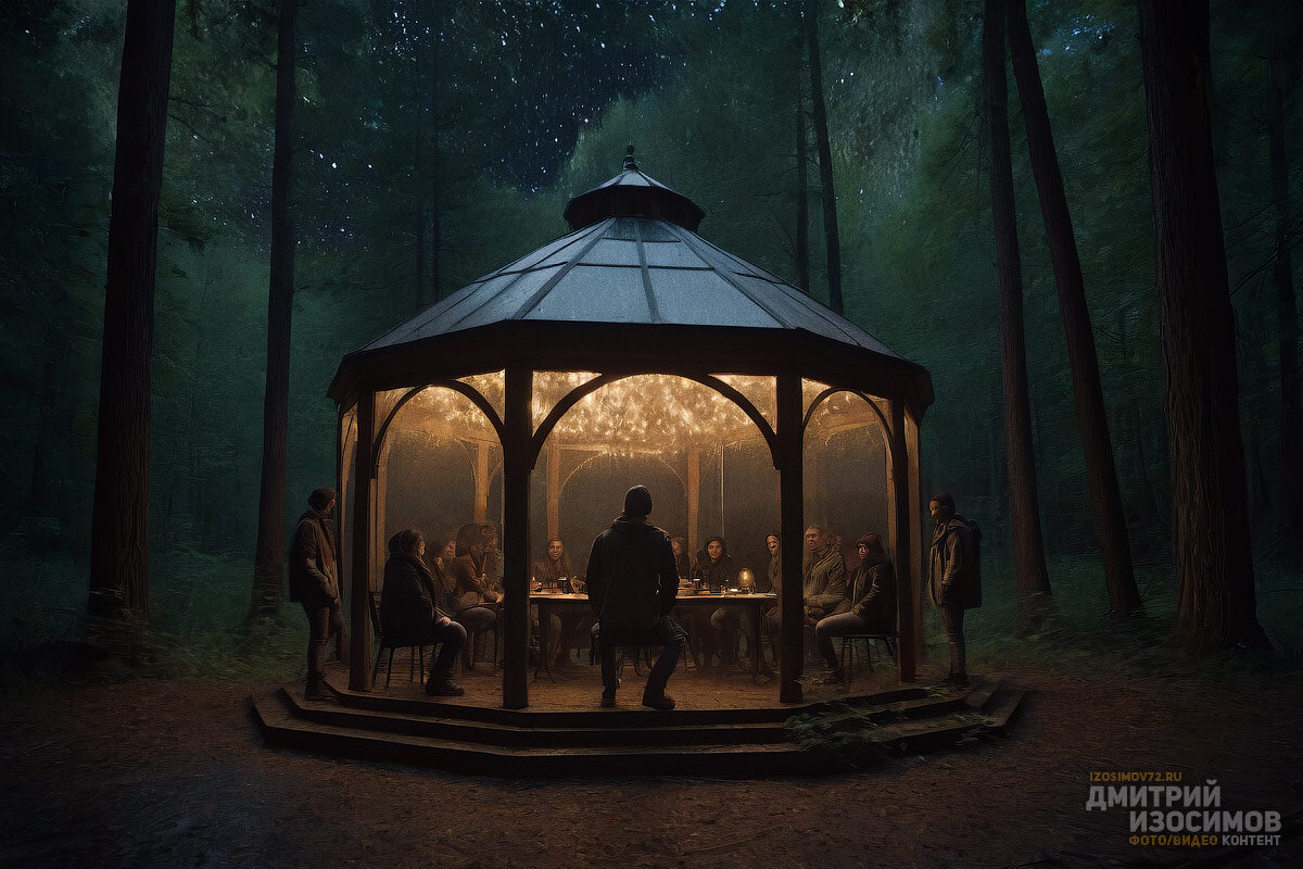 Они меня приглашали. Мне стало интересно. В конце концов, это не какие-нибудь там призраки, кошмары и прочая белиберда. У меня не вызывало никаких сомнений, что у сидящих в беседке были самые безобидные намерения. И я, пихнув дискобола, без колебаний перемахнул через чугунную ограду и направился к белому решетчатому домику, светящемуся в темноте, как маяк.