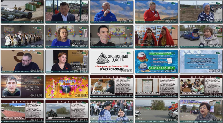 В выпуске: Белорецк посетили участники республиканского автопробега В с. Улу-Елга открылась новая спортивно-игровая площадка В Белорецке состоялся X фестиваль детского творчества «Горы! Сосны! Фестиваль!» В детском саду № 15 прошла акция по сбору гумпомощи участникам СВО В центре «Мой бизнес» г. Белорецка обсудили вопросы маркировки товаров В Белорецком районе ребенок погиб под колёсами КамАЗа Белорецкие шахматисты вошли в десятку лучших на турнире в Акъяре В Белорецке мужчина упал со склона в парке Школьница из с. Абзаково — лауреат конкурса «Пишем историю Уфы вместе!» Белорецкий медицинский колледж присоединился к акции «Окна Победы» Команда учеников Гимназии № 14 победила в фестивале «Матфест-Башкортостан» В Белорецке пройдут соревнования по легкой атлетике на призы Егора Николаева В отделе ЗАГС Белорецкого района зарегистрирована десятая двойня В Белорецке пройдёт автопробег «9 Мая» Праздничная афиша ко Дню Победы Легкоатлетическая эстафета на призы газеты «Урал» Метки: