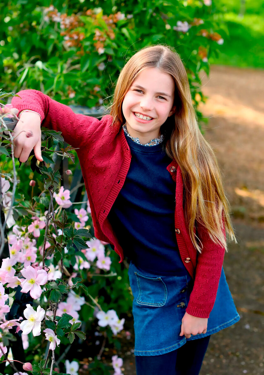 Принцесса Уэльская взяла в руки камеру, чтобы сделать новый портрет, посвящённый 9-летию её дочери. И в этом фотопослании она зашифровала тонкий намёк на особую связь с покойной королевой Елизаветой II. На снимке гордой мамы (и, по её собственному признанию, увлечённого фотографа-любителя), Шарлотта улыбается, опираясь на садовую ограду, а рядом с ней распускаются розовые цветы.