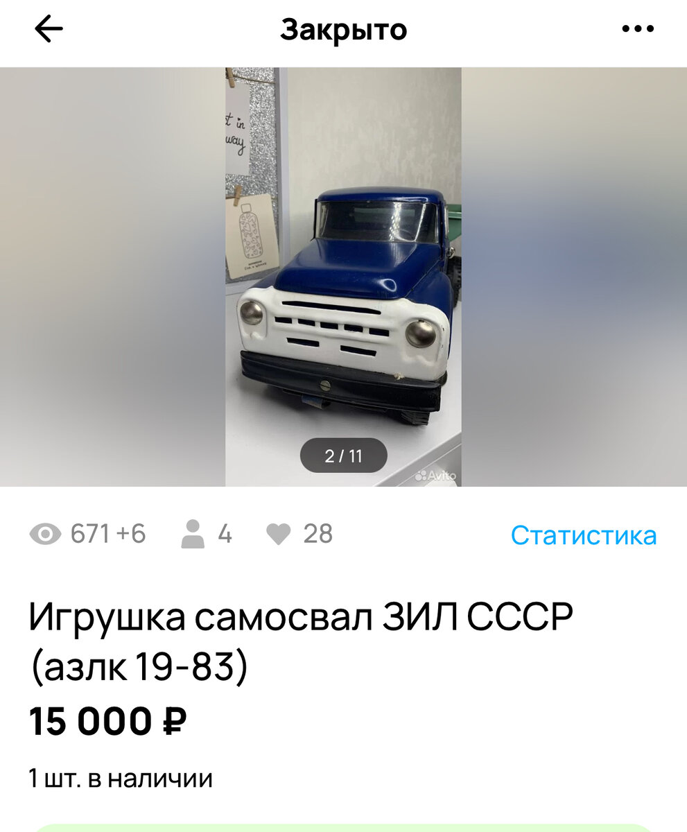 Чуть больше месяца назад я обнаружила на балконе винтажный самосвал времен СССР и, отмыв бедную машину, изучив рынок цен на аналогичный товар, выложила на продажу на Авито за 15000₽, а позже добавила к цене еще 500₽ (на случай торга!) Несколько раз писали потенциальные клиенты и просто любопытствующие. Один даже был достаточно серьезен на первый взгляд, попросил дополнительные фото и видео, что бы рассмотреть состояние самосвала, сам приехать на осмотр не мог (из Питера). После того, как я скинула все, что потребовал клиент, он пропал. Ничего серьезного… Сначала я подумала, может, машина выглядит не очень? Осмотрела. Да нет, самосвал в отличном состоянии, весь ровный, не подбитый, детали все на месте. Кстати, что бы добавить видеоролик на Авито в свое объявление, обязательно должна быть подключена доставка! Исключением является ссылка на ютуб, но я им не пользуюсь, ничего туда не заливаю. Поэтому доставку я подключила, но указала, что отправлю только по предоплате, никаких отказов. И