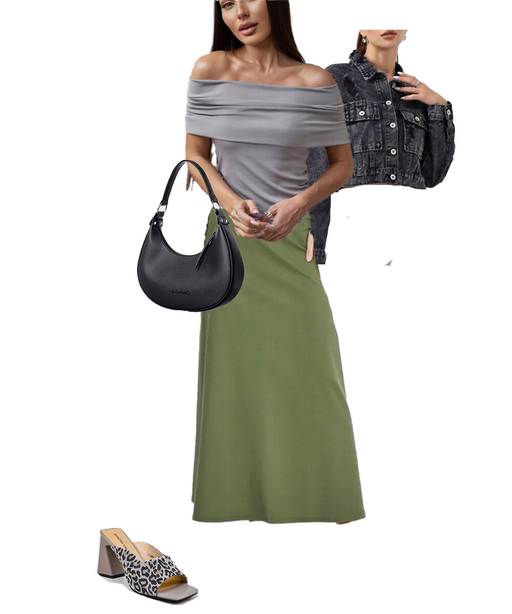 Я выбрала самые человеческие и носибельные тренды из тех, что есть в этом году. И составила с такими вещами очень разные, но каждый стильный по - своему, образы, чтобы каждая могла найти себе вариант по вкусу. Все выбрано на Wildberries и показано с артикулами для вашего удобства. Образ 1. Топ с открытыми плечами- одна из самых трендовых вещей этого сезона. Дополним её ещё двумя модными вещами: юбкой макси и сабо с леопардовым принтом. Сейчас еще прохладно, да и летом бывают такие дни и вечера, поэтому вторым слоем отлично подойдёт джинсовая куртка длиной до талии- так получаются идеальные пропорции. Артикулы: юбка 30858062, топ 221980757, сабо 225771526, джинсовка 161972634, сумка 45392106 Образ 2 Здесь вроде, все просто. Это так, да не так: серый и бордовый - два трендовых цвета, рубашка в полоску- также остроактуальна, серебристая сумочка из трендов выходить не собирается. А ещё обратите внимание на приём "подобие: кеды повторяют цвета рубашки и полосатые элементы на них есть. Под