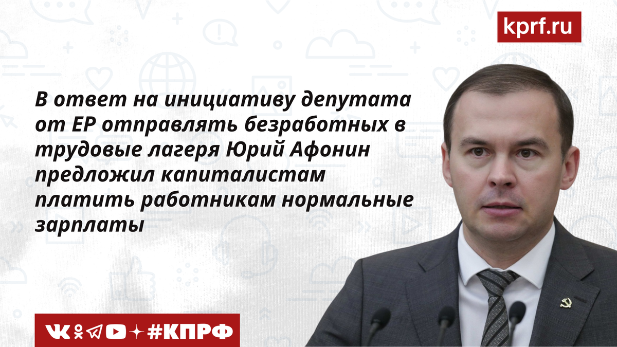 В КПРФ прокомментировали видео, в котором депутат от «ЕР» предлагает рассмотреть вопрос о направлении безработных в некие «трудовые лагеря»