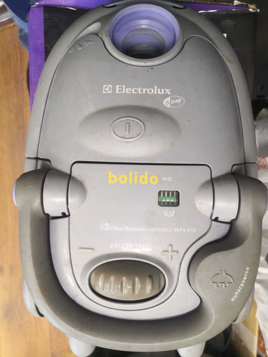 Всем здравствуйте! Сегодня у нас на ремонте пылесос Electrolux 4542 с диагнозом самопроизвольно выключается. По факту так и есть. При включении начинает работать, но через некоторое время может сам выключиться и включиться. А может и не включаться продолжительное время потом опять начать работать. Статья больше информативная и не планировалась по сему фоток не очень много, но суть постараюсь донести. Вот такой пылесос. Часть фото по разборке отсутствуют. Немного расскажу.