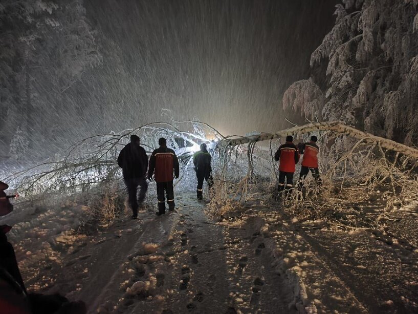 Область накрыл снегопад. Трассу закрыли для грузовиков, а в городах проблемы с электричеством и связью