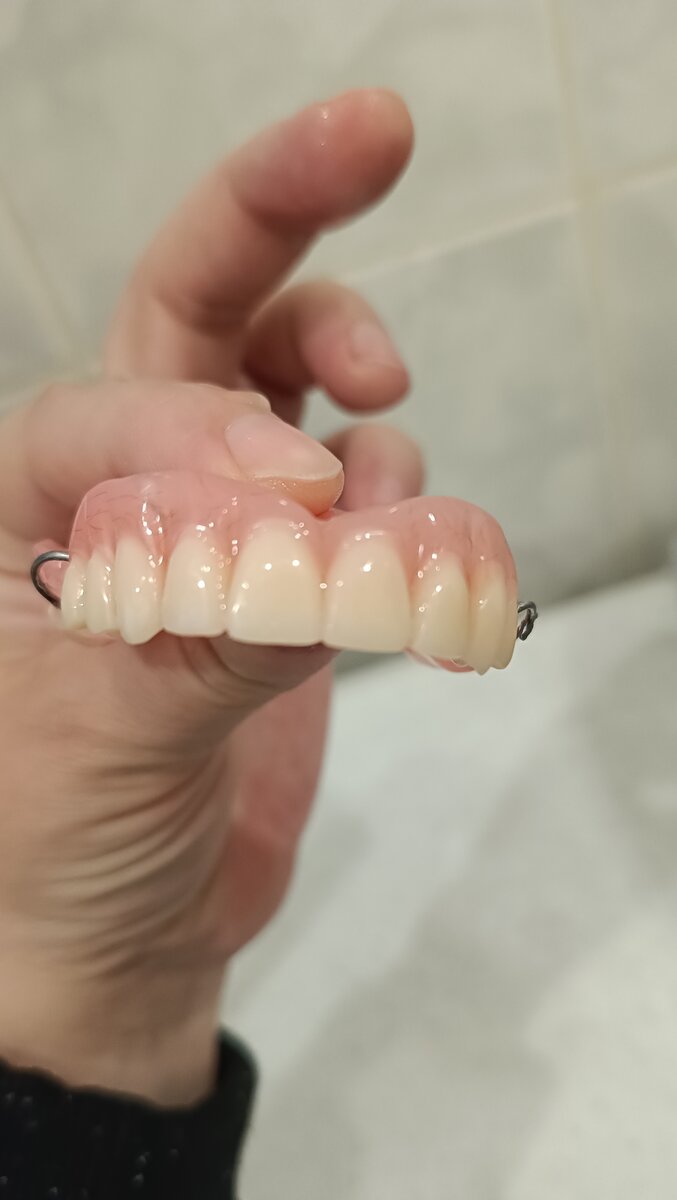 - Сегодня, вернее это уже вчера было, 3 мая, мне установили съемный протез на верхнюю челюсть. Долго я этого дня ждала и вот свершилось! Мне нужно было быть в поликлинике к 14:00 и хорошо что я прибыла в 13:45, передо мной был один мужчина, а после меня, буквально за секунду набежала толпа в 5 человек! Не знаю что за день такой. Может дали о себе знать длинные майские выходные. -Да у Вас аншлаг! - сказала я доктору, а он в ответ показал за своей спиной ряд готовых съемных протезов. Мужчине который был передо мной насчитали сумму в районе пятидесяти тысяч рублей и послали оплачивать ( у меня примерно столько же было), а я про себя подумала что мне уже сейчас всё поставят, а у него всё только начинается. Протез врач мне быстренько надел, показал как снимать/одевать и отпустил восвояси, но ненадолго, на следующей неделе нужно будет приходить для корректировки. Вышла я из кабинета с сияющей улыбкой, ну как в кино! Зашла в кабинет беззубая, а вышла уже зубая и красивая!) Пока я добиралась домой, по пути конечно же всем скидывала своё селфи и делилась радостью) Дома решила что таки нужно опробовать в деле, то есть съесть что-нибудь. Выбор пал на мороженое и всё прошло успешно. Радость моя была недолгой, часа через два разболелась голова. Пакетик нимесила меня немного спас,- это то что было под рукой. Ближе к вечеру я таки решила сходить в аптеку, там набрала обезболивающего и пришла в голову мысль купить мазь для дёсен. Провизор дала мне Дентамет. Я дома быстренько её намазала, она охладила немного дёсны и тут я поняла что очень хочу есть.