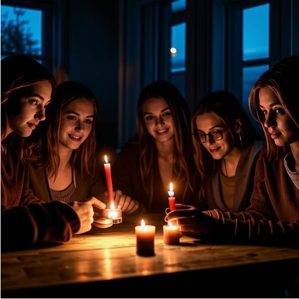 Таня, кряхтя как бабушка, встала и двинулась в сторону туалета. Весь мир был против этого, подставляя ей на пути стулья, тумбочки, шкафы и стены. Но Танюша, несмотря на все эти препятствия, с неотвратимостью ледокола, двигалась к своей цели. Мы с девчонками переглянулись и посмеялись. "Этому столику больше не наливать." - промурлыкала Настя. Атмосфера в квартире была отличная для продолжения жутких страшилок из детства. Свет от луны робко прорывался сквозь занавешенные окна, а огонёк свечи едва доставал до края стола... я невольно вздрогнула. Настя, видя это, решила немного разбавить обстановку: