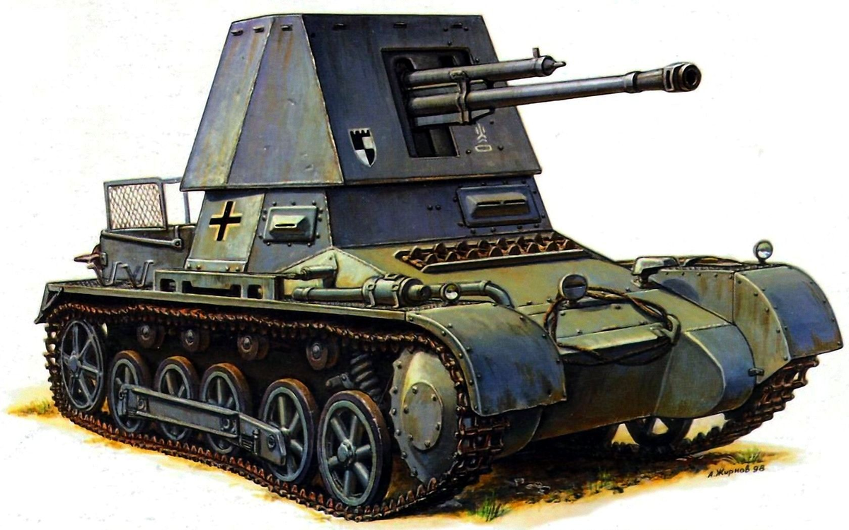 Panzerjäger I Самоходная артиллерийская установка, разработанная в 1940–1941 годах в Германии.Машина имела шасси от устаревшего лёгкого танка Pz.Kpfw. I, с которого убрали башню и частично срезали подбашенную коробку. На машину была установлена открытая сверху и сзади боевая рубка.Вооружалась 47-мм трофейным чешским орудием фирмы Skoda.Panzerjäger I принимал активное участие во Французской, Северо-Африканской и Восточной кампаниях Вермахта. Тигр II» (нем. «Königstiger») — немецкий тяжёлый танк заключительного периода Второй мировой войны. Производился серийно с января 1944 года по март 1945 года. Всего выпущено три опытных и 489 серийных танков. Благодаря мощной 88-мм пушке «Тигр II» был способен поражать в лобовой проекции все танки антигитлеровской коалиции периода Второй мировой войны на дистанциях более 2,5 км. Panzerkampfwagen VII «Löwe» (нем. Löwe — Лёве, Лев) — проект немецкого сверхтяжелого танка, разработанный в 1941—1942 году фирмой Krupp. Прототип не был изготовлен — и