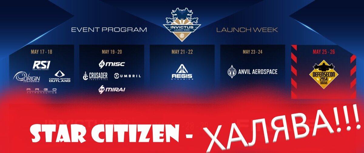 Расписание праздника Инвиктус Присоединяйтесь к празднованию с 17 по 29 мая, когда наша ежегодная военная выставка и мероприятие по БЕСПЛАТНЫМ полетам вернутся в Area18 на ArcCorp. Испытайте лучшие корабли, созданные по мотивам военной тематики, взгляните на новые разрабатываемые концепции и познакомьтесь с новыми кораблями и транспортными средствами, готовыми сделать вселенную более гостеприимной прямо сейчас! Кроме того, вы сможете осмотреть действующий Aegis Idris и увидеть, как весь флот во главе с RSI Polaris пролетает через Стэнтон. Переходи по ссылке для регистрации -