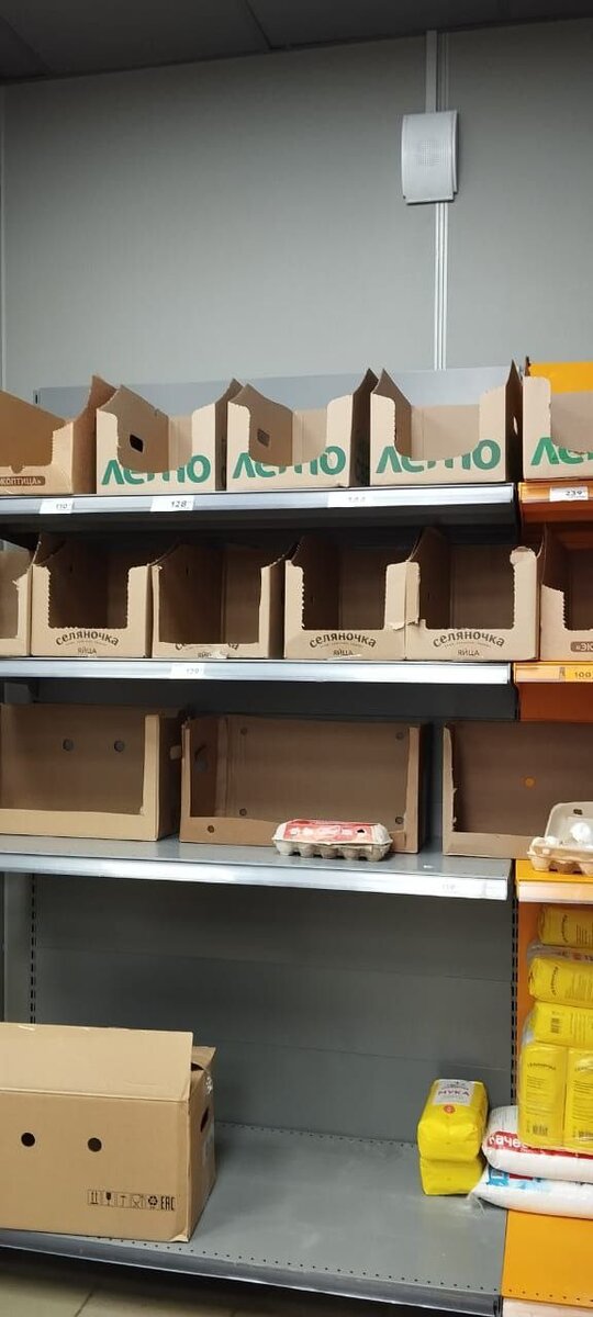 О ситуации с яйцами в магазинах рассказала читательница «Блокнота»: «Второй магазин в Шилово с пустыми полками». По словам девушки, ей пришлось собирать десяток целых среди битых яиц. В итоге вот такая красота у нее получилась: Напомним, ранее «Блокнот Воронеж» писал, что накануне Пасхи стало известно о существенном падении производства куриного яйца в нашем регионе. В 1-м квартале текущего года объемы производства данной продукции снизились на 22% по сравнению с аналогичным периодом прошлого года. Филипп Котов