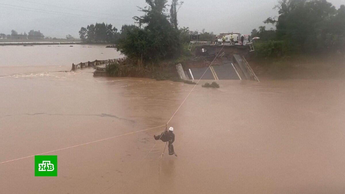 Спасательные операции сейчас проходят почти по всему югу Бразилии. Там затоплены огромные территории. Официально подтверждена гибель уже 39 человек. Около 70 числятся пропавшими без вести. Под воду ушло несколько крупных городов. Большая вода смывает капитальные конструкции и мосты. Мощные потоки сходят в низины, разрушая всё на своем пути.