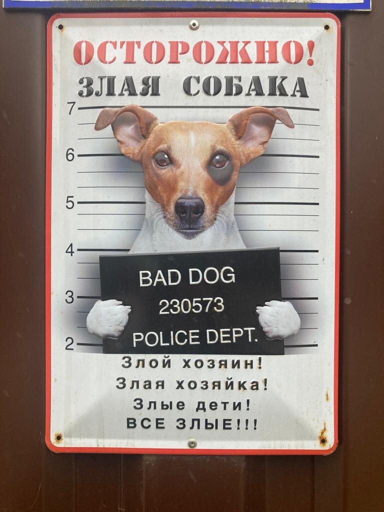 На ограде его имения в ближнем Подмосковье, например, вот такая забавная табличка.