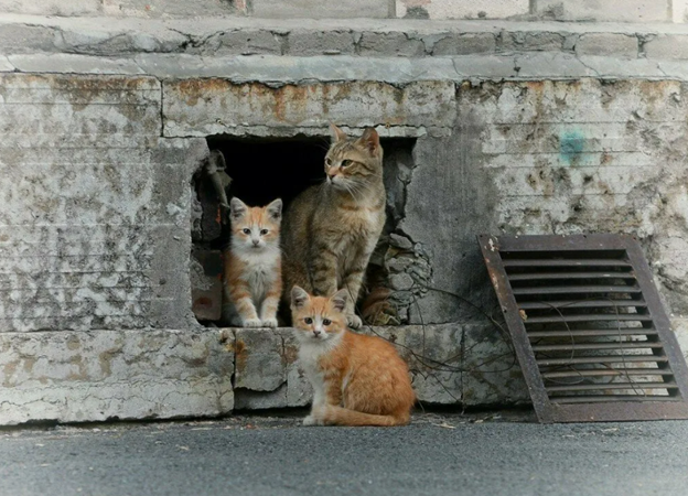 Коты привыкли к новому распорядку дня и всегда ожидали детей у входа в подвал.