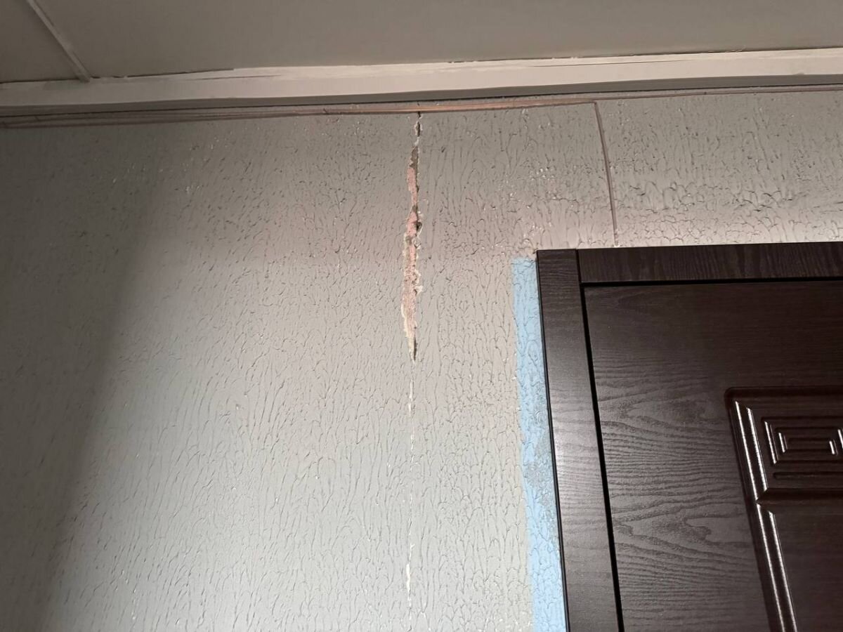 Кроме того были замечены огромные трещины на всю стену, что противоречит всем нормам безопасности, дом в прямом смысле разваливается.
