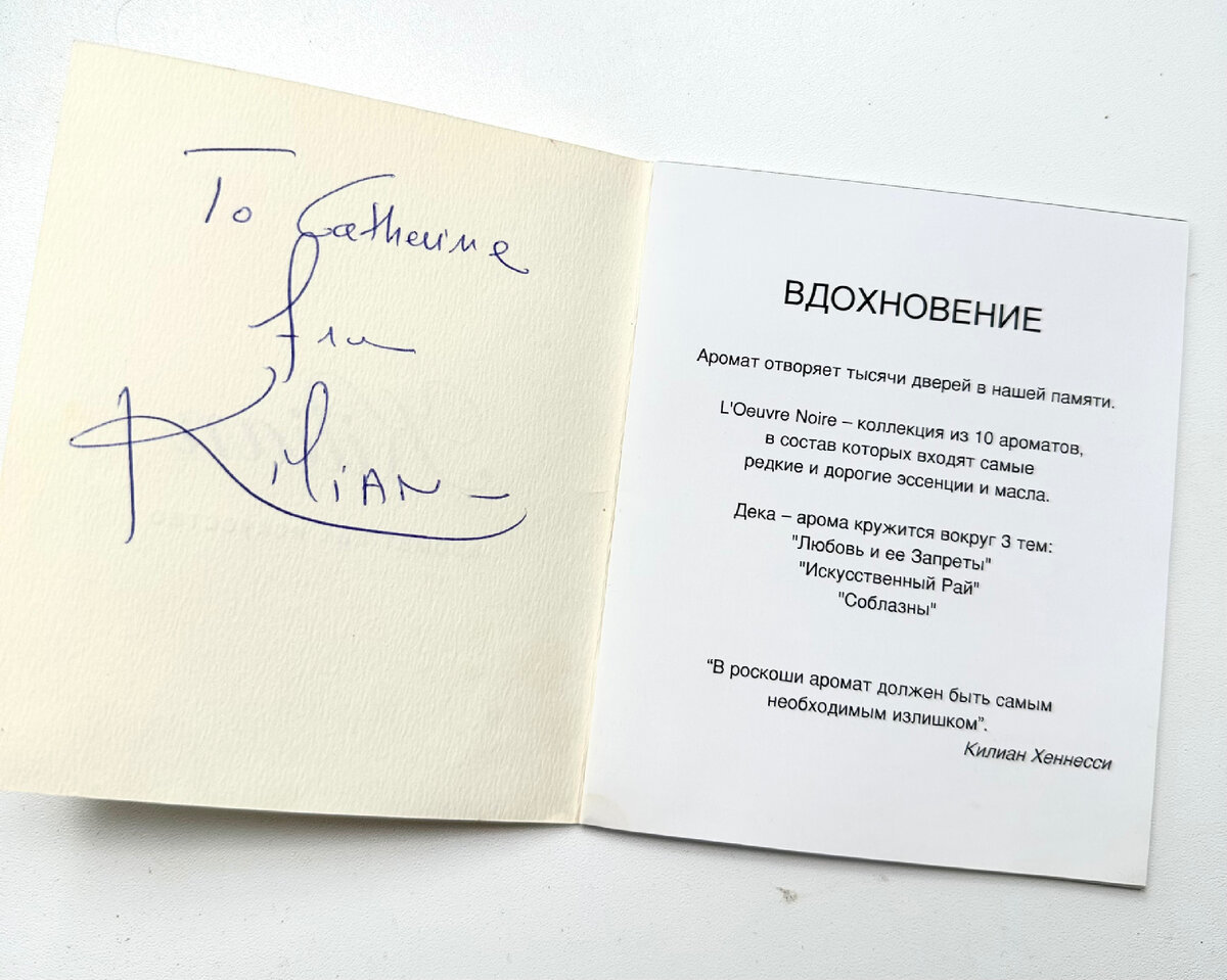Есть у меня, кстати, и личный автограф парфюмера. Его не продаю.