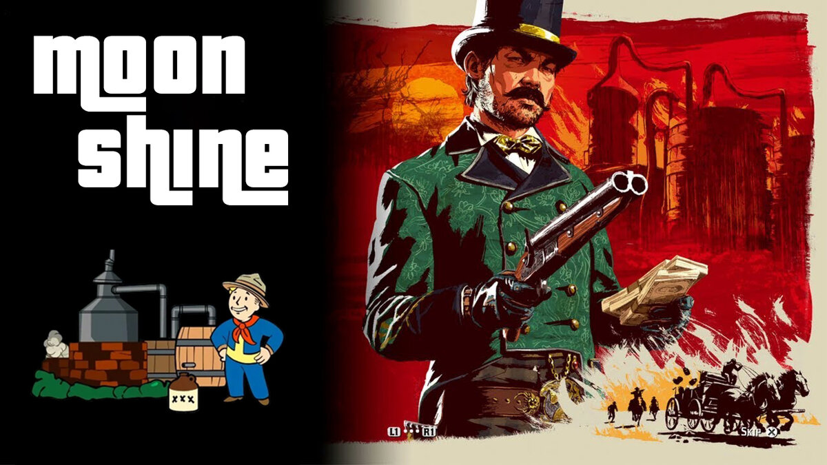 - В играх серии Red Dead Redemption можно наткнуться на различные сюжетные моменты, связанные с самогоном. Например, обнаружение самогонщиков, участие в заданиях, связанных с уничтожением вискикурен или даже собственное самогоноварение.