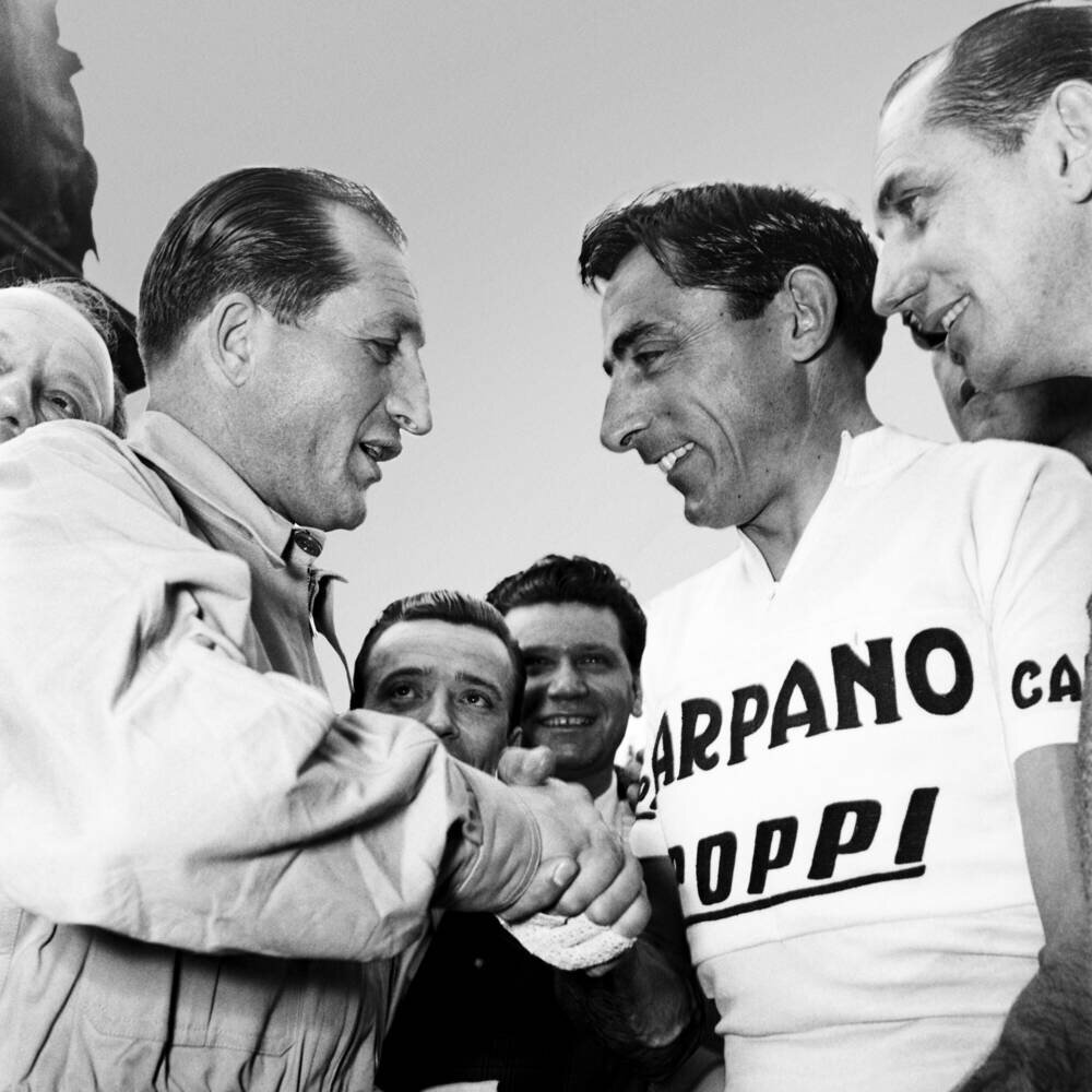 In this photo: Fausto Coppi and Gino BARTALI 1. Самая первая «Джиро д’Италия» прошла в 1909 году и состояла всего из 8 этапов. Но этапы были очень протяжёнными. Самый первый из них пролегал из Милана в Болонью — 397 километров! Стартовый выстрел прозвучал в 2:53 ночи/утра! Победителем гонки становился тот, кто набрал наибольшее количество очков, и таковым стал Луиджи Ганна с 25 очками. Лишь в 1914 году гонщики начали бороться не за очки, а за время. 2. Розовый цвет — инициатива спортивной газеты La Gazzetta dello Sport с целью привлечения читателей. Газета печатается на розовой бумаге до сих пор пор, поэтому лидер генеральной классификации и победитель гонки получали майку того же цвета. 3. Дьявол в платье! Да, именно так называли Альфонсину Страде — единственную женщину, участвовавшую в одной из трёх основных многодне