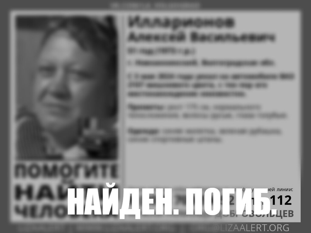 В Волгоградской области нашли погибшим пропавшего без вести 51-летнего Алексея Илларионова. Известно, что 3 мая житель города Новоаннинского отправился на вишневом ВАЗе 2107 на рыбалку. Он не выходил на связь и родные сразу забеспокоились. Прошло менее суток, когда поисковый отряд «Лиза Алерт» объявил печальную новость: мужчина найден погибшим. Обстоятельства поисков пока не разглашаются, известно только, что Алексея Илларионова обнаружили на месте предполагаемой рыбалки. Также продолжаются поиски 33-летнего Дмитрия Козлова из Саранска. На момент исчезновения он работал в Камышине. В последний раз он выходил на связь 30 апреля, в тот день муж отдыхал в баре Beerburg предположительно со знакомым. Подписывайтесь на наш телеграм-канал, там еще больше актуальных новостей. Анна Анатольева