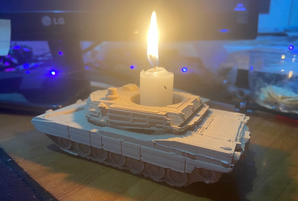 В свете последних событий все больше слышу про подбитый Абрамс, который выставляют для показа. Был вдохновлен этим и решил сделать подсвечник "горящий Абрамс" из гипса. Получилось примерно вот что. Как же это все делается? Начинается все конечно же с 3D модели. Вот примерно тот же ракурс что и на фото. Даже обладая базовыми навыками можно найти кучу всего в интернете и при этом если хочется использовать модель для коммерции что можно купить либо лицензию либо найти и вовсе бесплатные модели. Собственно я взял "бесплатный" Абрамс и доработал его а именно спилил пушку, добавил сверху дырку для свечи и закрыл все "дыры" что бы потом резина не затекала в модель. Вообщем делаем форму, короб и печатаем на 3D-принтере, получается вот что. На фото выше уже распечатанный танк с коробом залитый резиной. По цене все вместе выходит по материал не более 1000руб. зато резиновый молд будет многоразовый и в теории если его можно использовать для изготовлени яна продажу. Извлекаем молд. В моем случае