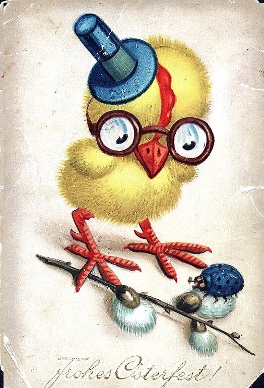 Всех с Пасхой! Я нашла у себя в архиве старинную открытку, поздравление с этим праздником. Моя мама, будучи девочкой, купила ее в Берлине в 1946 году. Дедушка служил помощником коменданта военного городка, ему было разрешено вызвать к себе семью. Так мама очутилась в столице Германии. Девочке позволяли ходить в сохранившиеся магазинчики в русском секторе. И эта милая открытка попала к нам и дожила до настоящего времени.