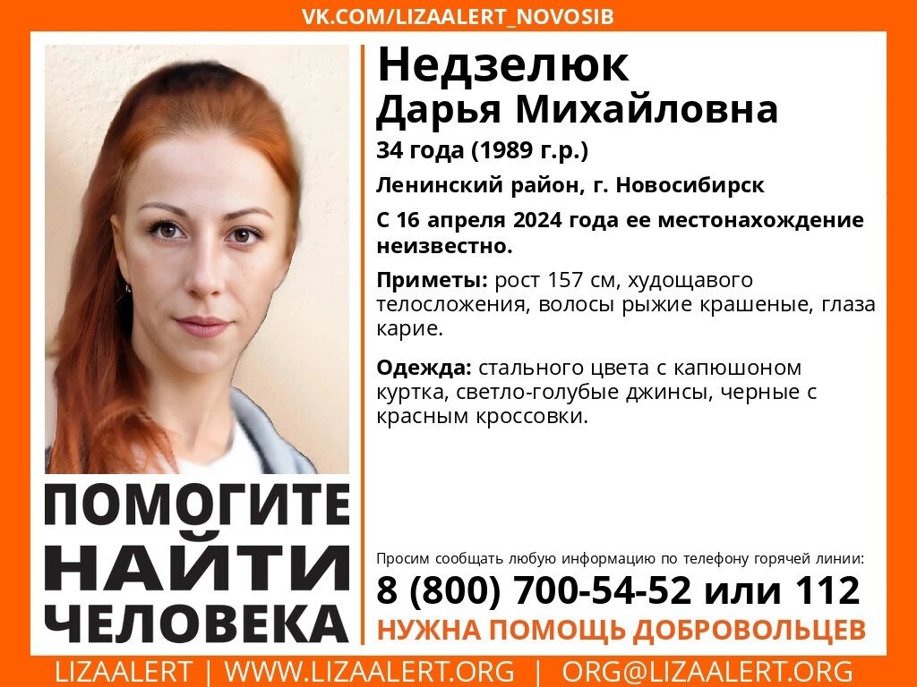 В Новосибирск больше двух недель ищут рыжеволосую Дарью Недзелюк