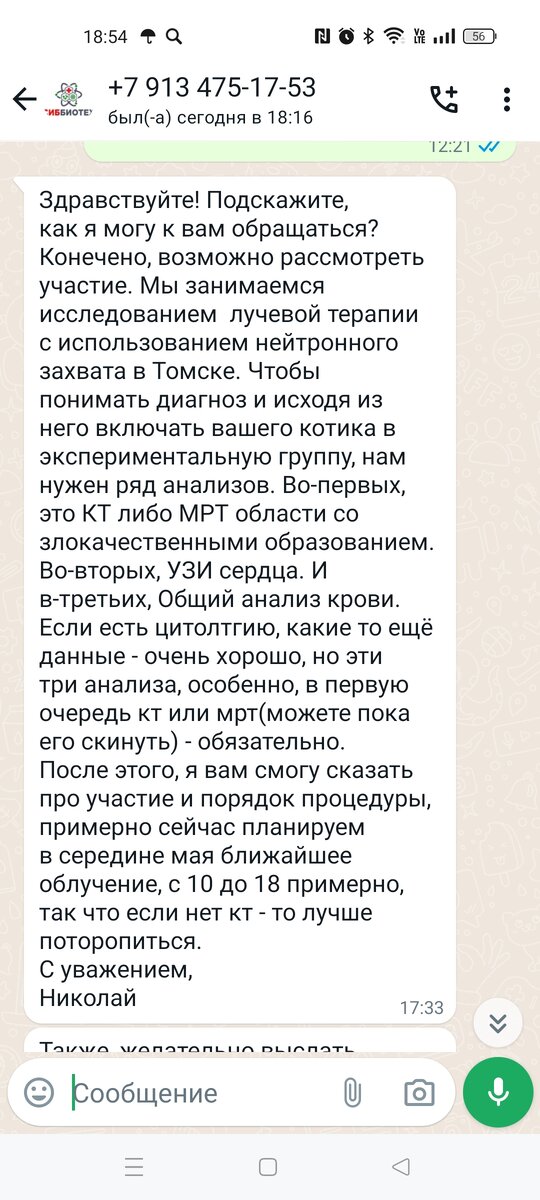 Нам написали из Сибирского научно-исследовательского центра медицины и биотехнологий. Но все по порядку. В Контакте я подписана на группу "Натуральное питание собак и кошек". Вот, в одном их постов, посвященных онкологии, увидела комментарий, где девушка рекомендовала автору почитать про бор-нейтронозахватную терапию в лечении рака. Я стала копать информацию. Поначалу, в поисковике выпадали только статьи новостных порталов общего характера. Я не физик-ядерщик, объясню своими словами. Происходит облучение нейтронами опухолевых клеток с препаратами бора. Этот самый бор распадается и выделяет энергию внутри клеток, то есть, вся реакция происходит внутри злокачественной опухоли, в отличии от других видов облучения. Здоровые ткани и клетки не страдают. В 2022 году ученые стали проводит эту терапию на собаках и кошках. Результаты были можно даже сказать отличными, в том числе и на последних стадиях болезни. В скором будущем они планируют лечить таким методом рак у людей. В общем, вышла я
