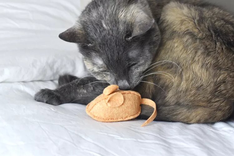 Ваша кошка сойдет с ума от этой игрушки-мышки, сделанной своими руками, наполненной кошачьей мятой. Это простая игрушка, которую вы можете сделать примерно за час, используя бесплатную выкройку. Кошек не интересует реалистичность игрушек, поэтому из фетра можно сделать мышонка любого цвета, который вам нравится. Длина игрушки составляет всего несколько сантиметров, поэтому вы сможете сделать несколько мышей из ткани, в зависимости от того, сколько материала у вас есть. Оборудование/Инструменты: Материалы: Прикрепите уши мыши 2. Согните узкий конец уха и держите его рядом с заостренным носовым концом боковой части. Прошейте вертикальную линию поперек сгиба. Используйте три нити мулине для вышивания и прострочите обратным стежком, чтобы закрепить ухо. Повторите то же самое с другой боковой частью в том же месте, чтобы обе стороны были одинаковыми. Сшейте стороны игрушки вместе 3. Держите две стороны изнаночными сторонами друг к другу. Начиная с кончика носа, прошейте спину сметочным